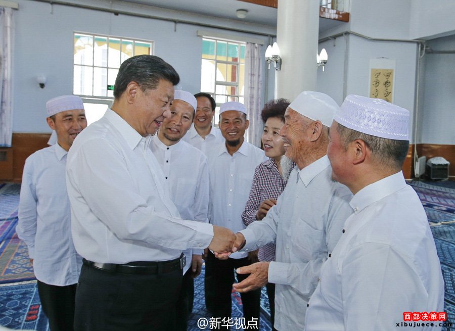 新華網(wǎng)北京7月19日電習(xí)近平總書記19日上午來到寧夏回族自治區(qū)銀川市新城清真寺了解宗教活動開展情況。在禮拜大殿,習(xí)近平與寧夏伊斯蘭教界人士親切交流,通過他們向廣大穆斯林群眾致以親切問候和良好祝愿。習(xí)近平說,我國的各民族和宗教是在5000多年的文明史中孕育發(fā)展起來的,只有落地生根才能生生不息。習(xí)近平希望大家繼續(xù)發(fā)揚愛國愛教傳統(tǒng),在脫貧致富奔小康的道路上發(fā)揮積極作用。在場的伊斯蘭教界人士表示,將認(rèn)真貫徹落實全國宗教工作會議精神,既念好古蘭經(jīng),又念好致富經(jīng),為國家發(fā)展?fàn)I造和諧的環(huán)境。(文字:新華社記者霍小光,攝影:新華社記者鞠鵬、李濤據(jù)新華社“新華視點”微博報道)