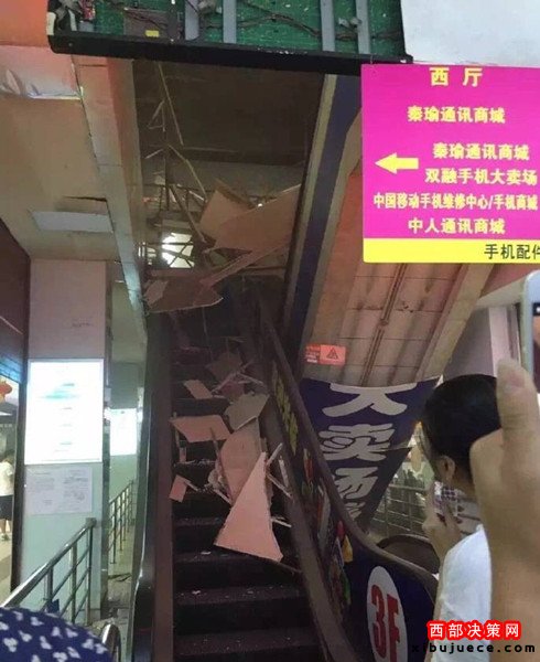 (通訊員 展?。?nbsp;今天中午1點左右,西安市西華門海星智能廣場四樓賣場電梯頂?shù)蹴斖蝗幻撀洹I虘魝冋f,房頂是木質(zhì)結(jié)構(gòu),坍塌毫無預(yù)兆。事故所幸暫時沒有人員受傷!