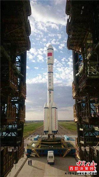 圖為長征二號F T2運(yùn)載火箭與天宮二號空間實驗室的垂直轉(zhuǎn)運(yùn)。