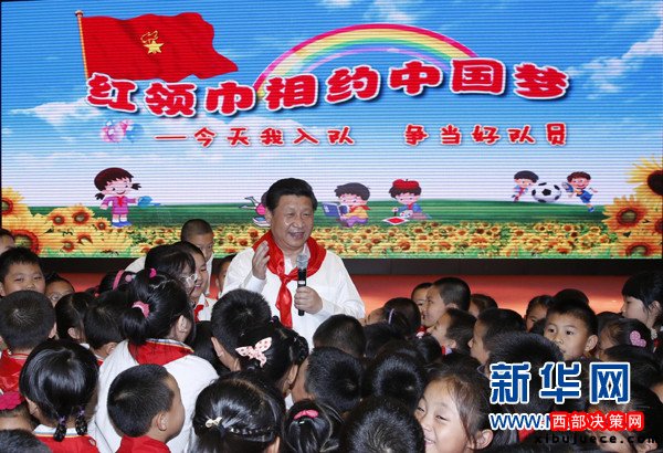 ?。?014年5月30日,習(xí)近平來(lái)到北京市海淀區(qū)民族小學(xué),參加慶祝“六一”國(guó)際兒童節(jié)活動(dòng)。這是習(xí)近平在參加少先隊(duì)入隊(duì)儀式時(shí),向少先隊(duì)員們致以節(jié)日問(wèn)候。新華社記者鞠鵬攝)
