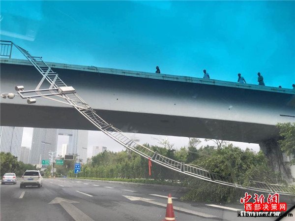 登陸點(diǎn)大量行道樹被風(fēng)吹倒。
