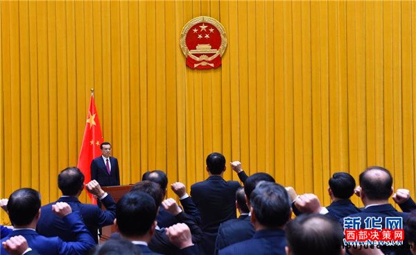 9月18日上午,國務(wù)院在北京中南海首次舉行憲法宣誓儀式。國務(wù)院總理李克強(qiáng)監(jiān)誓。