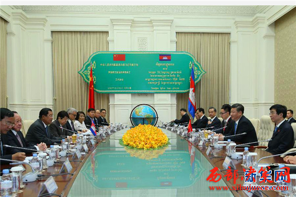 習近平強調(diào),由兩國老一輩領(lǐng)導人共同締造和精心培育的中柬友誼歷久彌堅。當前,中柬關(guān)系呈現(xiàn)積極發(fā)展勢頭,政治互信不斷加強,經(jīng)濟合作成果豐碩,多邊配合更加密切。中方始終珍視中柬傳統(tǒng)友誼,愿同柬方一道,不斷豐富中柬全面戰(zhàn)略合作伙伴關(guān)系內(nèi)涵,給兩國人民帶來更多實實在在的利益。