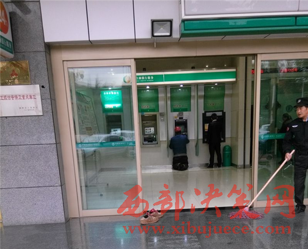 西安一農(nóng)民工怕弄臟地面脫鞋跪地在ATM機前取款