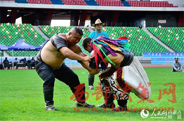 鄂爾多斯市“四季時尚”那達慕活動之一——第三屆鄂爾多斯國際那達慕大會搏克比賽精彩紛呈。
