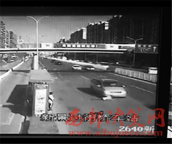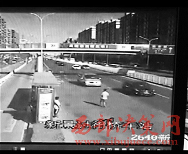 這段不到5秒鐘的視頻翻拍自事發(fā)現(xiàn)場的一個監(jiān)控攝像頭,視頻正對的方向是一個公交站臺和機動車道。