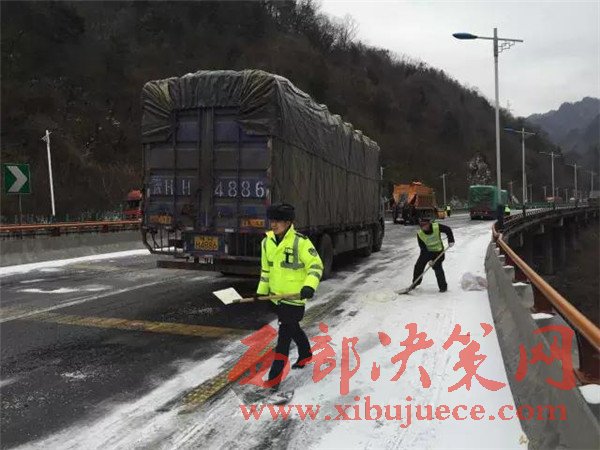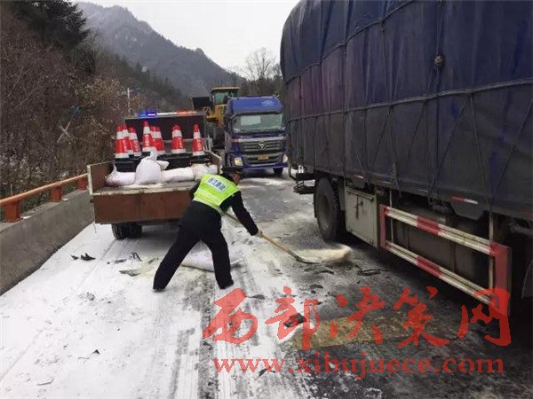 昨天寧陜境內(nèi)持續(xù)發(fā)布寒潮藍(lán)色預(yù)警,連續(xù)的雨雪、降溫、大風(fēng)造成最低溫度降幅10度以上,山區(qū)最低氣溫達(dá)到零下6度,對(duì)交通運(yùn)輸造成了較大影響。由于部分大型運(yùn)輸車(chē)輛沒(méi)有及時(shí)更換防凍柴油,油路受凍無(wú)法啟動(dòng),部分緩坡路面結(jié)冰,載重車(chē)輛原地打滑,還有個(gè)別車(chē)輛由于路面濕滑造成的單方交通事故等原因造成了大面積擁堵。