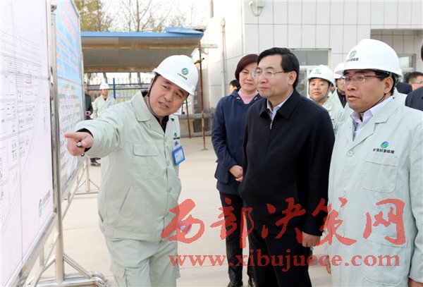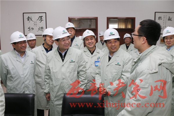 11月19日,省長(zhǎng)胡和平(右二)在陜西華浩軒公司視察調(diào)研,右一為中陜核集團(tuán)董事長(zhǎng)張斌成,左二為永壽縣委書(shū)記蘇曉梅。
