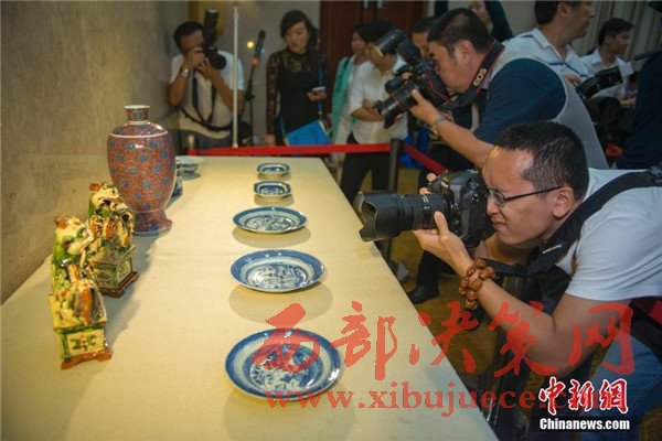 11月23日,“海外文物入藏國家南海博物館”新聞發(fā)布會在??谂e行,十件在海外漂泊數(shù)百年的珍貴陶瓷文物,經(jīng)兩家國內(nèi)企業(yè)在紐約佳士得拍賣會上成功拍下后,無償捐獻(xiàn)給國家南海博物館。圖為入藏中國國家南海博物館的海外文物。