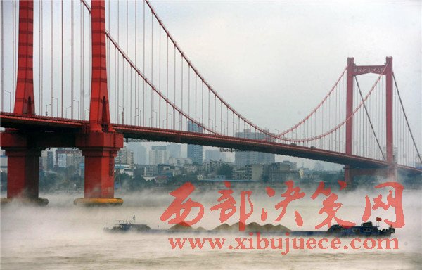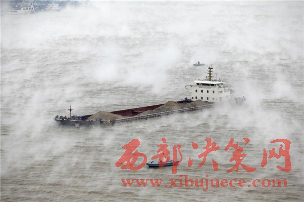 2016年11月23日,湖北武漢,寒潮帶來極速降溫后,由于江水溫度較大氣溫度高出不少,長江江面上出現(xiàn)層層水霧,煙波浩渺,蔚為壯觀,放眼望去,仿佛整個(gè)城市都漂浮在云霧之中。
