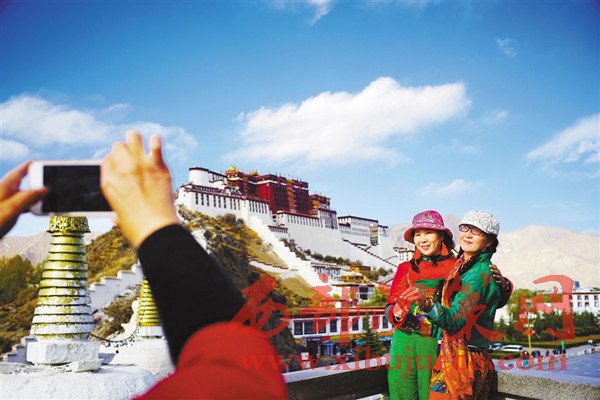 近日,記者在布達拉宮廣場看到,眾多游客紛紛舉起手中的相機拍照留念。來自廣州的胡先生告訴記者:“冬季來拉薩旅游沒有夏季那么擁擠,景色也非常美麗,我一定要多拍些照片回去和朋友分享。”