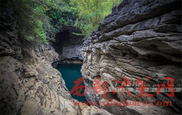 采訪團成員領(lǐng)略都安地下河天窗群風(fēng)采。