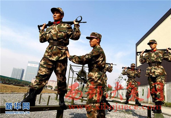 12月5日,艾麥爾·吾斯曼(左一)進(jìn)行突擊訓(xùn)練。武警上海總隊(duì)四支隊(duì)新兵連維吾爾族戰(zhàn)士艾麥爾·吾斯曼來(lái)自新疆維吾爾自治區(qū),今年從江南大學(xué)應(yīng)征入伍。經(jīng)過(guò)嚴(yán)格的新兵訓(xùn)練,艾麥爾·吾斯曼快速完成由大學(xué)生向合格軍人的“漂亮轉(zhuǎn)身”。