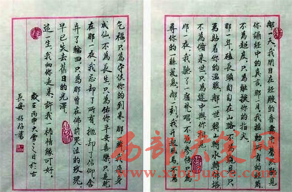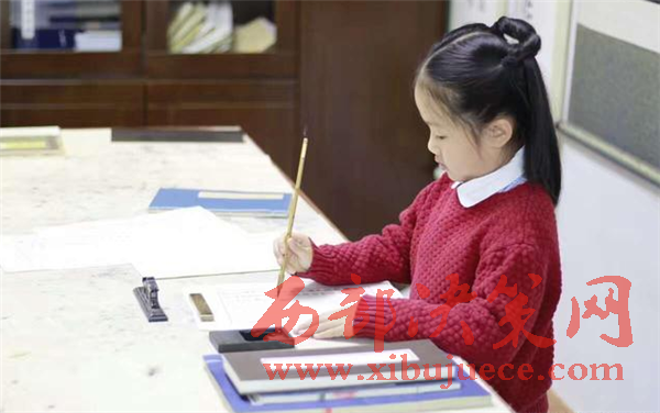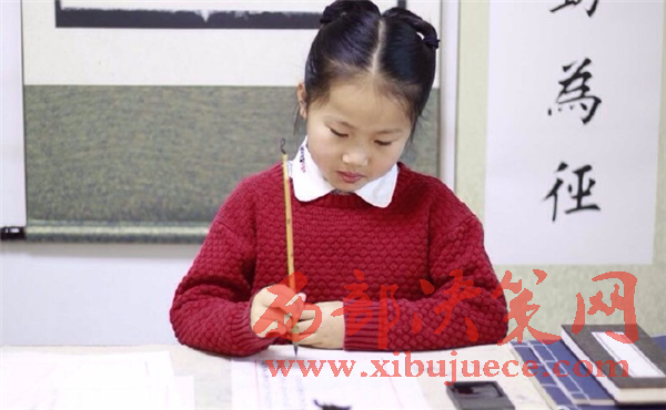 圖為小女孩書寫的倉央嘉措的《那一天》