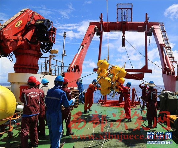 科考隊(duì)員在回收潛標(biāo)(11月15日攝)。我國遠(yuǎn)洋綜合考察船“科學(xué)”號(hào)正在西太平洋執(zhí)行潛標(biāo)觀測(cè)網(wǎng)維護(hù)與升級(jí)任務(wù)。截至目前,科考隊(duì)員已獲取了140余件觀測(cè)設(shè)備連續(xù)1年的現(xiàn)場(chǎng)數(shù)據(jù),維護(hù)了8套深海潛標(biāo),并重新布放至西太平洋海域。