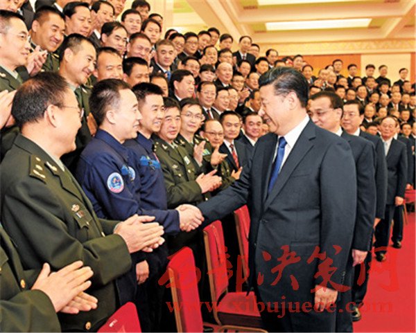 在熱烈的掌聲中,習近平發(fā)表重要講話。他首先代表黨中央、國務院和中央軍委,對天宮二號和神舟十一號任務圓滿成功表示熱烈的祝賀,向參加任務的航天員和廣大參研參試人員、航天戰(zhàn)線全體同志表示誠摯的慰問。