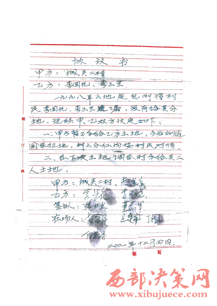 附:延安市中級(jí)人民法院民事裁定書和七里村鎮(zhèn)和城關(guān)二村李果花的協(xié)議書。