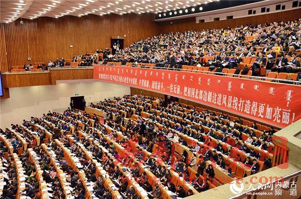 民主、團(tuán)結(jié)、求實、奮進(jìn)。內(nèi)蒙古人民會堂格外莊嚴(yán),主席臺帷幕中央國徽高懸,會場氣氛隆重?zé)崃摇?/span>