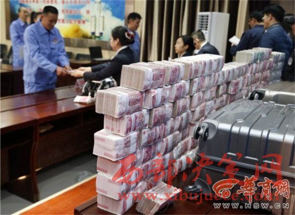 昨日上午9時(shí)20分,裝著1000萬現(xiàn)金的武裝押運(yùn)車開到工地,安保人員和企業(yè)員工將10萬元一捆的百元大鈔碼出了一座“錢山”,看著眼前堆成小山似的現(xiàn)金,早早前來排隊(duì)的農(nóng)民工們也是興奮不已。