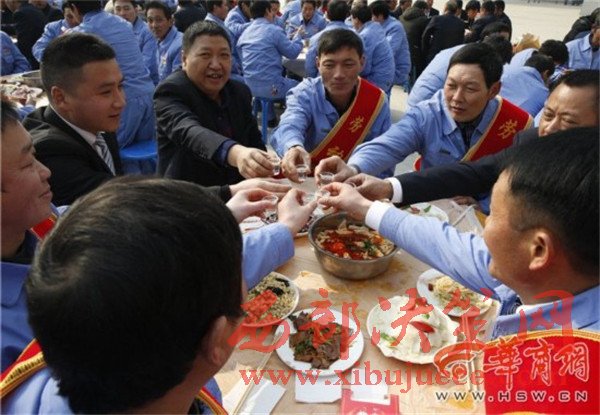 張興民介紹,在為大家發(fā)放了1600萬的工資后,工地上還為農(nóng)民工返鄉(xiāng)之前準(zhǔn)備了聚餐。每個(gè)桌上不僅有自釀的“苞谷燒”,還有八涼兩熱的菜品,同時(shí)按照陜西風(fēng)俗習(xí)慣準(zhǔn)備的有大燴菜,僅大燴菜里面的肉都有500多斤,希望以此方式來感謝農(nóng)民工兄弟一年多的辛苦!