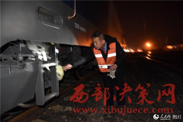 2017年2月3日,司機(jī)孫日峰檢查機(jī)車(chē)走行部。