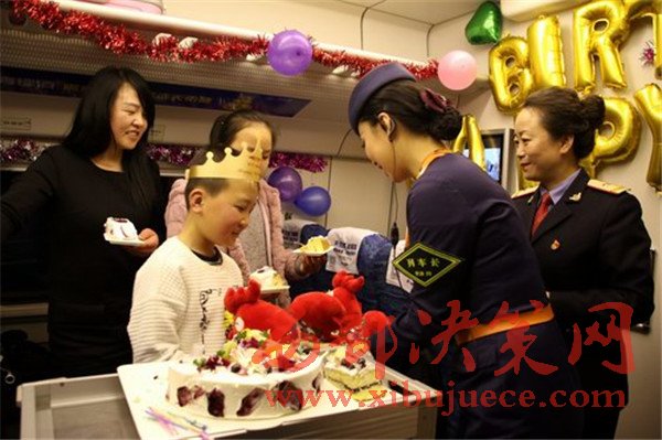“祝你生日快樂(lè)”,2月5日,在蘭州西開(kāi)往西寧的D2723次列車(chē)上,為一對(duì)“天路母子”舉行的別樣生日聚會(huì)引得網(wǎng)名點(diǎn)贊無(wú)數(shù)。