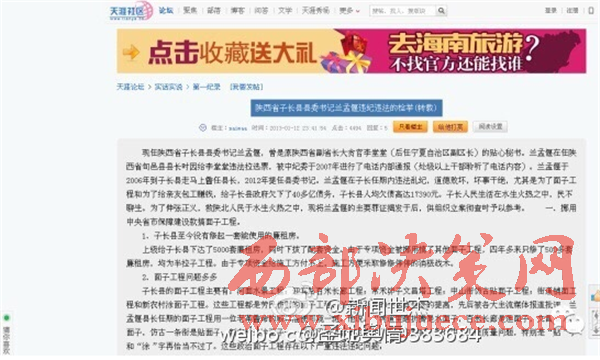 據(jù)微博網(wǎng)友爆料:現(xiàn)任陜西省子長(zhǎng)縣縣委書記蘭孟偃,曾是原陜西省副省長(zhǎng)大貪官李堂堂(后任寧夏自治區(qū)副區(qū)長(zhǎng))的貼心秘書。蘭孟偃在任陜西省旬邑縣縣長(zhǎng)時(shí)因給李堂堂違法拉選票,被中紀(jì)委于2007年進(jìn)行了電話內(nèi)部通報(bào)(處級(jí)以上干部聆聽(tīng)了電話內(nèi)容)。蘭孟偃于2006年到子長(zhǎng)縣走馬上齤任縣長(zhǎng),2012年提任縣委書記。蘭孟偃在子長(zhǎng)任期內(nèi)違法亂紀(jì),道德敗壞,壞事干絕,尤其是為了面子工程和為了給親友包工賺錢,給子長(zhǎng)縣政府欠下了40多億債務(wù),子長(zhǎng)縣人均欠債高達(dá)17390元。子長(zhǎng)人民生活在水生火熱之中,民不聊生。為了伸張正義,救陜北人民于水生火熱之中,現(xiàn)將蘭孟偃的主要罪證揭發(fā)于后,供組織立案徹查時(shí)予以參考。 一、挪用中央省市保障建設(shè)款搞面子工程。