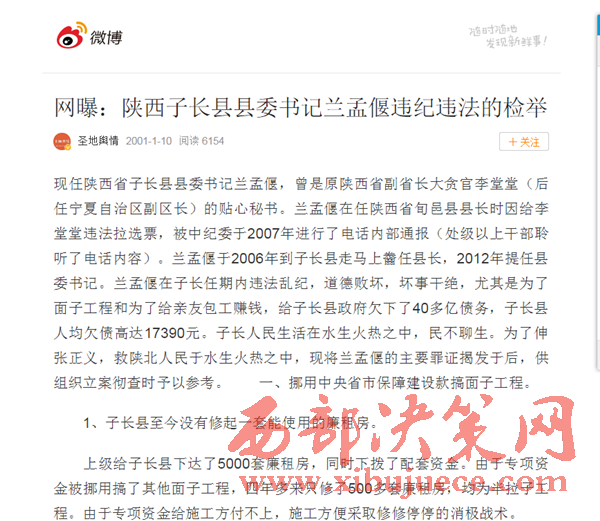 以上僅僅是蘭孟偃罪證的部分事實(shí),雖為冰山一角,但已觸目驚心,若對(duì)其之案徹查,經(jīng)濟(jì)腐敗、政齤治腐敗、司法腐敗、道德腐敗都將浮出水面,公布于眾?! ≌?qǐng)救救陜北的人民吧!??!