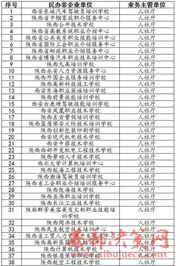 2月8日,陜西省民政廳發(fā)布公告擬對203家社會(huì)組織予以撤銷登記,名單包括西安東城汽車駕駛員培訓(xùn)學(xué)校、西北大學(xué)計(jì)算機(jī)培訓(xùn)中心、陜西航空工程技術(shù)學(xué)校、陜西省高校學(xué)生就業(yè)指導(dǎo)培訓(xùn)中心等。名單中的社會(huì)組織在公告起60日內(nèi),可書面申辯主張權(quán)利。