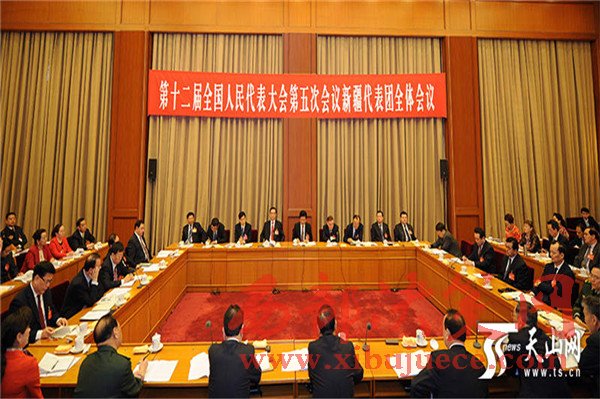 3月5日下午,出席十二屆全國人大五次會議的新疆代表團(tuán)舉行全體會議,審議政府工作報(bào)告。