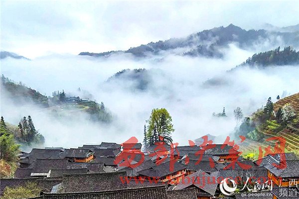 廣西各族小寨村雨后云霧繚繞 宛如美麗的水墨畫(huà)