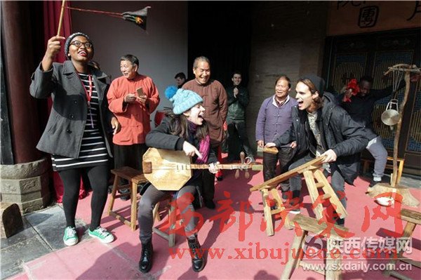 11月15日,北京大學(xué)燕京學(xué)堂的丹麥、以色列等42個(gè)國(guó)家的100多名外國(guó)留學(xué)生,來(lái)到西安了解中國(guó)傳統(tǒng)文化和城市發(fā)展及變化,在關(guān)中民俗藝術(shù)博物院,“老外”對(duì)華陰老腔產(chǎn)生濃厚興趣,現(xiàn)場(chǎng)向老藝人學(xué)唱華陰老腔。