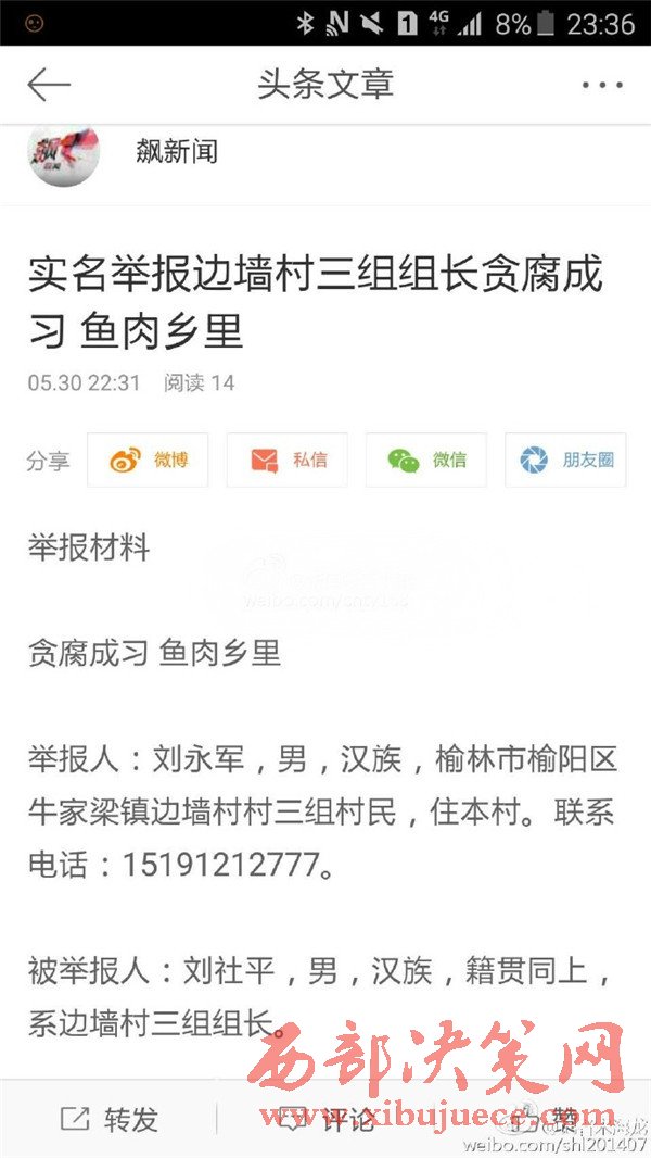 榆陽區(qū)牛家梁鎮(zhèn)邊墻村三組組長被實名舉報“貪腐成習(xí)魚肉鄉(xiāng)里”