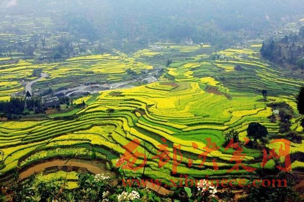 錯(cuò)落有致的油菜花田。猶如一片金黃燦燦、隨風(fēng)翻涌的海洋,又如一塊黃綠相間、層次分明的地毯。
