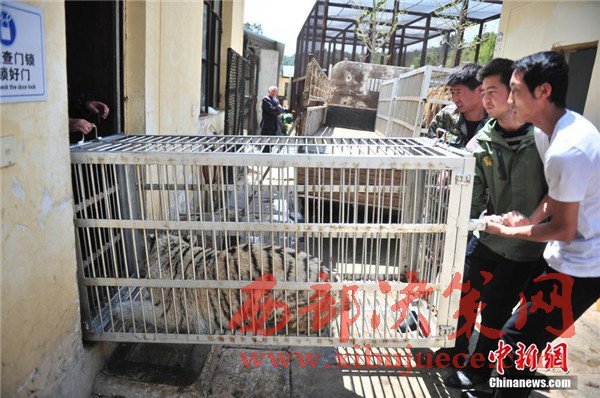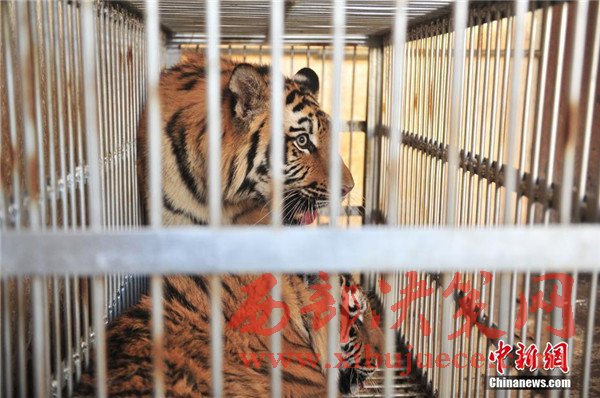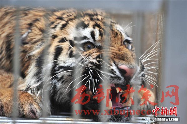 4月5日,關(guān)在籠子里的老虎。當(dāng)日,云南野生動物園6頭老虎從繁育中心搬入散養(yǎng)區(qū),經(jīng)過一段時間的觀察適應(yīng)期后,就可以與游客見面。據(jù)工作人員介紹,在繁育中心人工飼養(yǎng)長大的老虎到繁殖年齡后,就會搬到有更大活動空間的散養(yǎng)區(qū)。云南野生動物園是中國十大老虎繁殖基地之一。