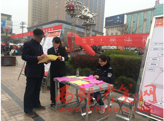 西部決策網(wǎng)-西部大開(kāi)發(fā)(帥華鋒 杜杰 通訊員 張蕾)4月6日上午,隴縣第二十三個(gè)法治宣傳月啟動(dòng)儀式在隴州廣場(chǎng)舉行,隴縣法院組織干警參與了當(dāng)日的普法宣傳活動(dòng)。