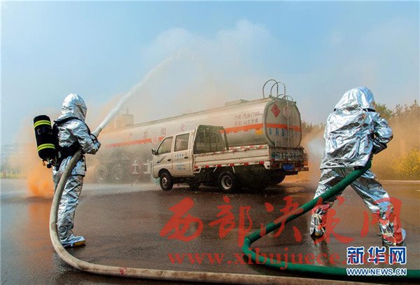 當日,山東省菏澤市消防、交通等部門為有效應對?;返缆愤\輸突發(fā)事件,提高應急救援和協(xié)調能力,聯(lián)合開展?;愤\輸企業(yè)事故應急救援演練,出動消防、救護等車輛10余臺,近百人參加演練。