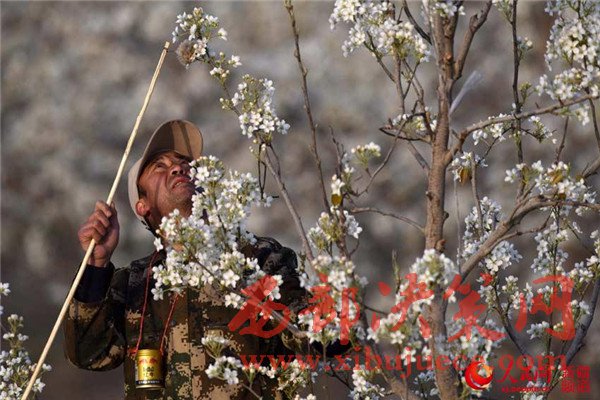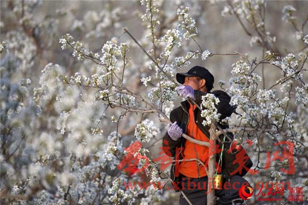 新疆庫爾勒梨花艷 果農(nóng)授粉保豐收