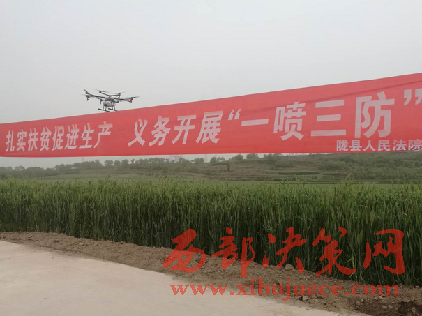 普樂(lè)塬村是隴縣法院幫扶的貧困村,針對(duì)村內(nèi)青壯年大多外出打工,勞動(dòng)力不足的情況,為確保小麥高產(chǎn),減輕村民負(fù)擔(dān),同時(shí)引導(dǎo)大家關(guān)注科技種田,轉(zhuǎn)變思維方式,經(jīng)法院駐村第一書(shū)記路云多方聯(lián)系,隴縣法院花費(fèi)3萬(wàn)元,租用無(wú)人機(jī)免費(fèi)為普樂(lè)塬村噴灑農(nóng)藥。預(yù)計(jì)用2天時(shí)間為全村2000畝小麥進(jìn)行防蟲(chóng)霉菌預(yù)防,同時(shí)也邀請(qǐng)縣農(nóng)機(jī)推廣中心對(duì)藥品質(zhì)量進(jìn)行全程監(jiān)督。