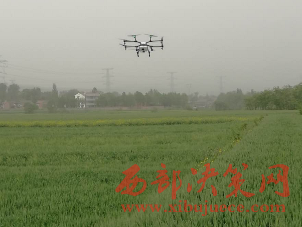 西部決策網(wǎng)-西部大開(kāi)發(fā)(帥華鋒 李海瑞 通訊員 張蕾)5月5日上午9點(diǎn),微風(fēng)拂面、麥浪輕翻,6臺(tái)植保無(wú)人機(jī)正在隴縣東風(fēng)鎮(zhèn)普樂(lè)塬村的麥田上空作業(yè),飛行在距離小麥80公分處均勻地噴灑農(nóng)藥。