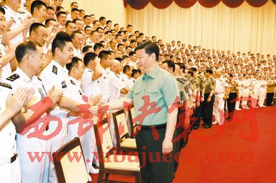 中共中央總書(shū)記、國(guó)家主席、中央軍委主席習(xí)近平24日上午視察海軍機(jī)關(guān),代表黨中央和中央軍委,對(duì)海軍第十二次黨代表大會(huì)的召開(kāi)表示熱烈的祝賀,向海軍全體指戰(zhàn)員致以誠(chéng)摯的問(wèn)候。他強(qiáng)調(diào),海軍是戰(zhàn)略性軍種,在國(guó)家安全和發(fā)展全局中具有十分重要的地位。要以黨在新形勢(shì)下的強(qiáng)軍目標(biāo)為引領(lǐng),貫徹新形勢(shì)下軍事戰(zhàn)略方針,堅(jiān)持政治建軍、改革強(qiáng)軍、依法治軍,瞄準(zhǔn)世界一流,銳意開(kāi)拓進(jìn)取,加快轉(zhuǎn)型建設(shè),努力建設(shè)一支強(qiáng)大的現(xiàn)代化海軍,為實(shí)現(xiàn)中國(guó)夢(mèng)強(qiáng)軍夢(mèng)提供堅(jiān)強(qiáng)力量支撐。