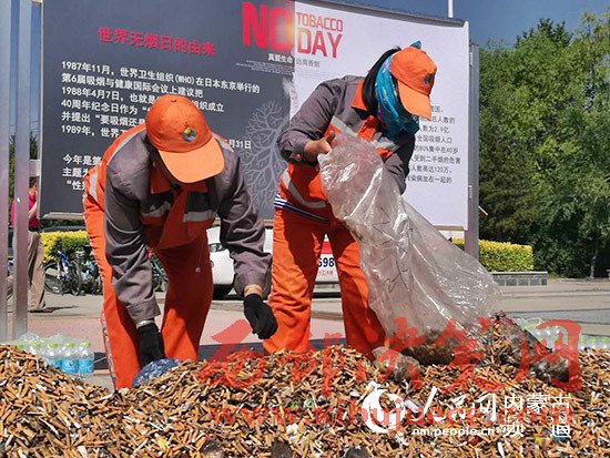 呼和浩特市城環(huán)環(huán)衛(wèi)公司第十片區(qū)負責人張芳說,這些煙頭是環(huán)衛(wèi)工人用一天的時間收集的,在無煙日呼吁全社會愛護環(huán)境,不要隨手亂扔垃圾,要將垃圾扔進就近的垃圾桶,以免給環(huán)衛(wèi)工人造成第二次的工作負擔,尤其是車窗拋物更增加了環(huán)衛(wèi)工人的危險性。
