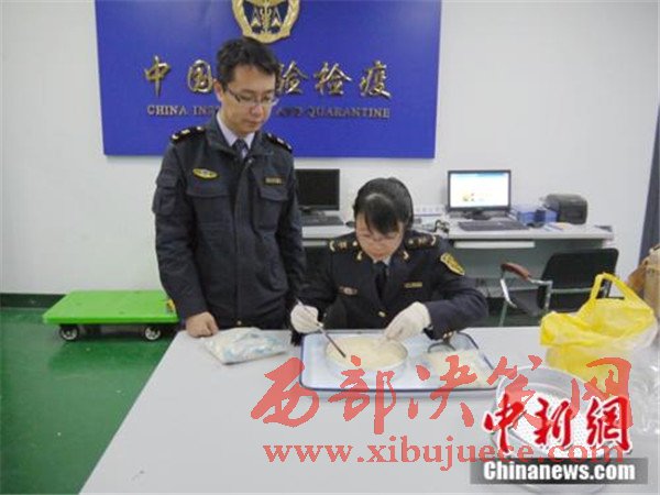 圖為寧波郵路口岸截獲進(jìn)境帶活蟲(chóng)大米檢驗(yàn)檢疫現(xiàn)場(chǎng)。