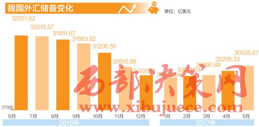 中國人民銀行最新公布的數(shù)據(jù)顯示,5月末,我國外匯儲備規(guī)模為30536億美元,較4月末小幅上升240億美元,增幅0.8%,連續(xù)第四個月出現(xiàn)回升。今年1月,外匯儲備跌破3萬億美元,此后開始連續(xù)回升。