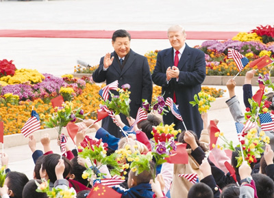 11月9日,國(guó)家主席習(xí)近平在北京人民大會(huì)堂東門外廣場(chǎng)舉行歡迎儀式,歡迎美利堅(jiān)合眾國(guó)總統(tǒng)唐納德·特朗普對(duì)中國(guó)進(jìn)行國(guó)事訪問(wèn)。(記者 李學(xué)仁 攝)