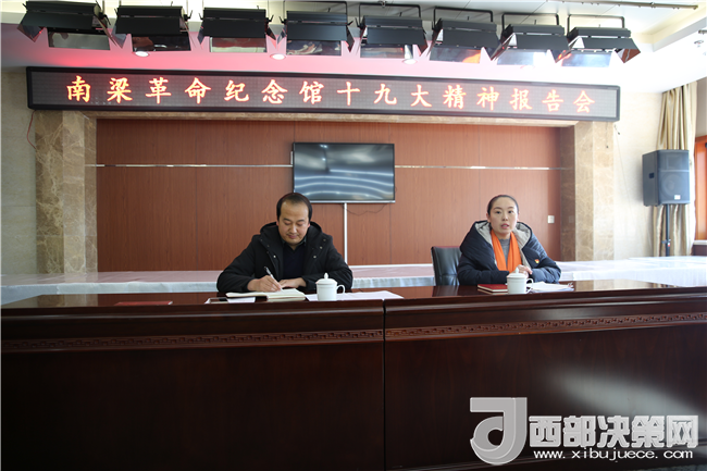 西部決策網(wǎng)-西部大開(kāi)發(fā)訊(帥華鋒 李海瑞 通訊員 趙高銪)近日,南梁革命紀(jì)念館組織召開(kāi)黨的十九大精神宣講報(bào)告會(huì),會(huì)上館長(zhǎng)聶明靜作重要講話,黨的十九大代表、副館長(zhǎng)王雅麗作黨的十九大精神宣講報(bào)告,并開(kāi)展陜甘邊黨史理論綜合考核工作,各部門負(fù)責(zé)人以及基層各景點(diǎn)管理員50多人參會(huì)。