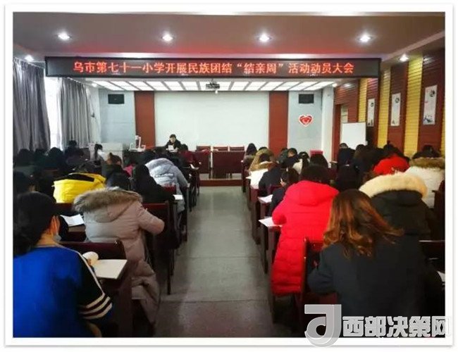 西部決策網(wǎng)-西部大開發(fā)訊(許鹍飛 通訊員 宋國平 李玉彤)為積極響應(yīng)自治區(qū)民族團(tuán)結(jié)“結(jié)親周”活動的號召,烏魯木齊市第七十一小學(xué)迅速行動,緊鑼密鼓進(jìn)行周密安排部署。2017年12月11日上午10點(diǎn),民族團(tuán)結(jié)一家親“結(jié)親周”活動動員大會在學(xué)校五樓會議室召開。黨支部書記兼校長韓莉同志給全體在職人員傳達(dá)相關(guān)會議精神,宣讀學(xué)校民族團(tuán)結(jié)一家親“結(jié)親周”活動實(shí)施方案。并對本次活動做了全面的安排部署,讓黨員干部盡快趕到親戚家中,同吃同住同勞動同學(xué)習(xí),深入宣講黨的十九大精神,加強(qiáng)各族干部群眾交往交流交融,為實(shí)現(xiàn)新疆社會穩(wěn)定和長治久安凝心聚力。