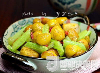 板栗250g、芹菜200g、油、鹽、枸杞。