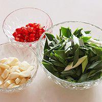 7. 將青蒜苗放進(jìn)鍋中,大火煸炒勻均。