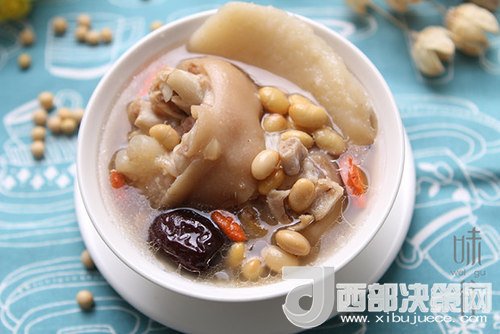 豬腳,黃豆,姜、蔥花、鹽適量。